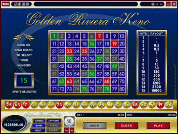 fácil. Elija hasta quince lugares en la tabla de Keno y luego haga clic en el
